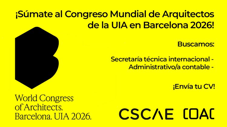 El CSCAE abre un proceso selectivo para contratar a dos profesionales para el Congreso Mundial de Arquitectos de la UIA en Barcelona 2026. [Plazo ampliado – 15 de julio]