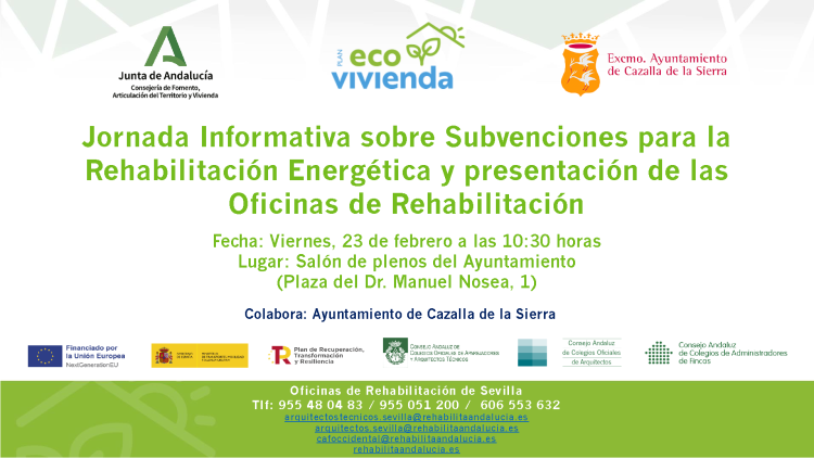 Jornada divulgativa sobre subvenciones para la rehabilitación energética de viviendas en Cazalla de la Sierra (Sevilla)
