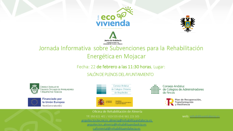 Jornada divulgativa sobre subvenciones para la rehabilitación energética de viviendas en Mojacar (Almería)