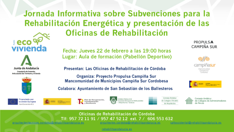 Jornada divulgativa sobre subvenciones para la rehabilitación energética de viviendas en San Sebastián de los Ballesteros (Córdoba)