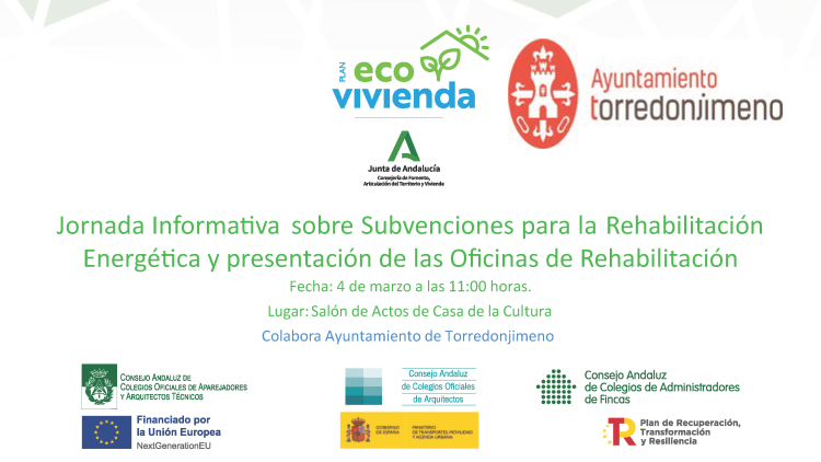 Jornada divulgativa sobre subvenciones para la rehabilitación energética de viviendas en Torredonjimeno (Jaén)