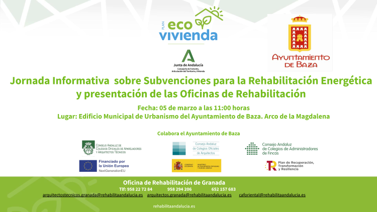 Jornada divulgativa sobre subvenciones para la rehabilitación energética de viviendas en Baza (Granada)