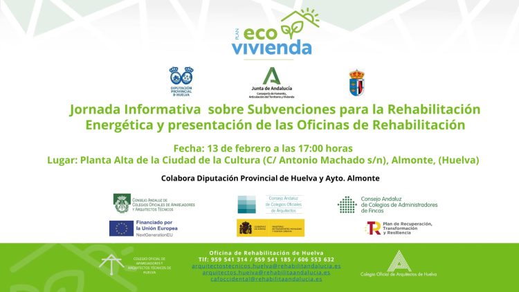 Jornada divulgativa sobre subvenciones para la rehabilitación energética de viviendas en Almonte (Huelva)