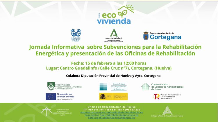 Jornada divulgativa sobre subvenciones para la rehabilitación energética de viviendas en Cortegana (Huelva).