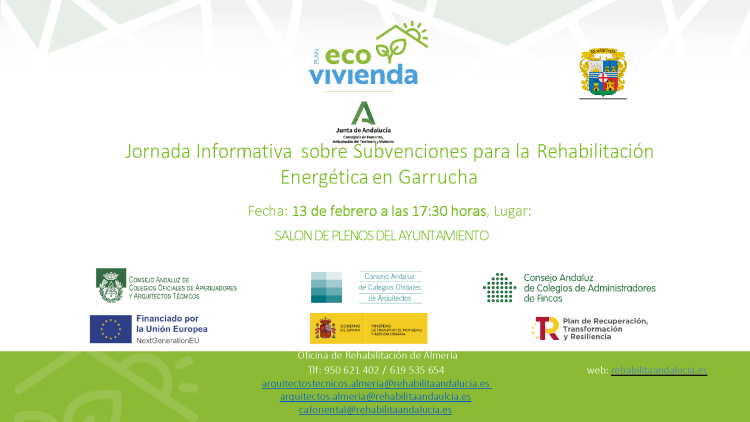 Jornada divulgativa sobre subvenciones para la rehabilitación energética de viviendas en Garrucha (Almería)