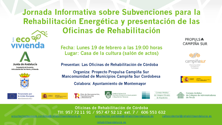 Jornada divulgativa sobre subvenciones para la rehabilitación energética de viviendas en Montemayor (Córdoba)
