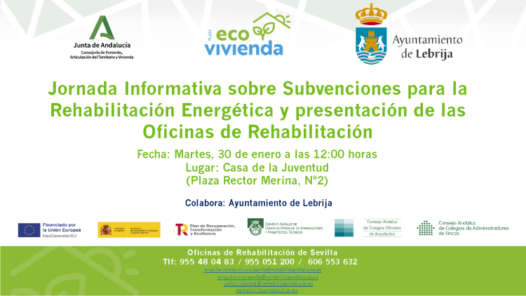 Jornada divulgativa sobre subvenciones para la rehabilitación energética de viviendas en Lebrija (Sevilla)