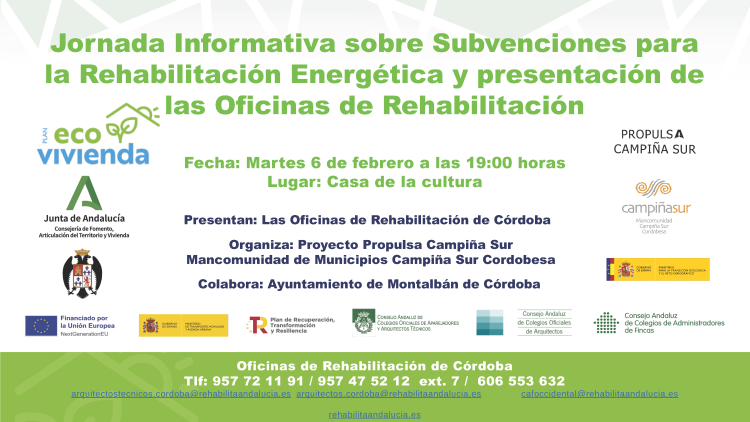Jornada divulgativa sobre subvenciones para la rehabilitación energética de viviendas en Montalbán (Córdoba)