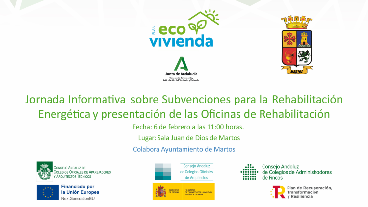 Jornada divulgativa sobre subvenciones para la rehabilitación energética de viviendas en Martos (Jaén)