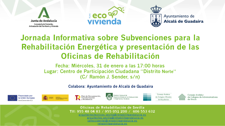 Jornada divulgativa sobre subvenciones para la rehabilitación energética de viviendas en Alcalá de Guadaíra (Sevilla)