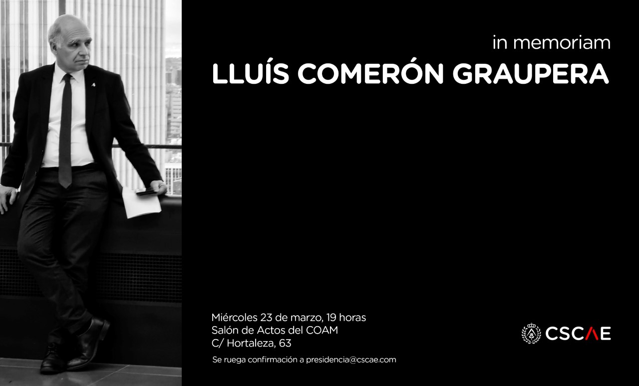 Tal y como se acordó en el pasado Pleno de Consejeros, el acto In Memoriam del Presidente Lluís Comerón Graupera tendrá lugar el próximo 23 de marzo a las 19.00 horas en Madrid.