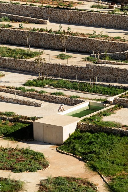 La sostenibilidad es un valor intrínseco a la rehabilitación de este paisaje histórico. Las técnicas constructivas son propias del entorno, usando materiales naturales de canteras cercanas, piedra para muros y pavimentos, y áridos para terrizos, ya extraídos y acopiados como sobrantes. Con todas las superficies transpirables y permeables, se dota de drenaje para optimizar el agua de lluvia. La vegetación existente se mantiene y la incorporada es en su mayoría autóctona o adaptada a las condiciones climáticas, reforzando la protegida y su fauna asociada. Este compromiso contribuye a la integración armoniosa de la intervención con su entorno, entonando con su atmósfera, dialogando con su forma y adaptándose a sus escalas. El resultado es un hábitat compartido entre personas y naturaleza, un lugar amable y accesible para la ciudadanía y un refugio de naturaleza. El proyecto revela la historia del lugar e invita a indagar y participar de su memoria para construir su futuro en común.