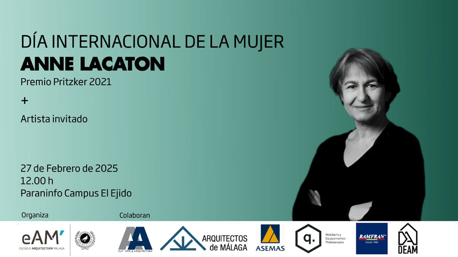 Para conmemorar el 20 aniversario de la ETS de Arquitectura de la Universidad de Málaga, se han organizado diversos eventos a lo largo de 2025, que comenzarán el 27 de febrero, coincidiendo con el Día Internacional de la Mujer, con la conferencia de la galardonada con el Premio Pritzker, Anne Lacaton, que se llevará a cabo en el Paraninfo de la Universidad del Campus de El Ejido, a las 12:00 h.