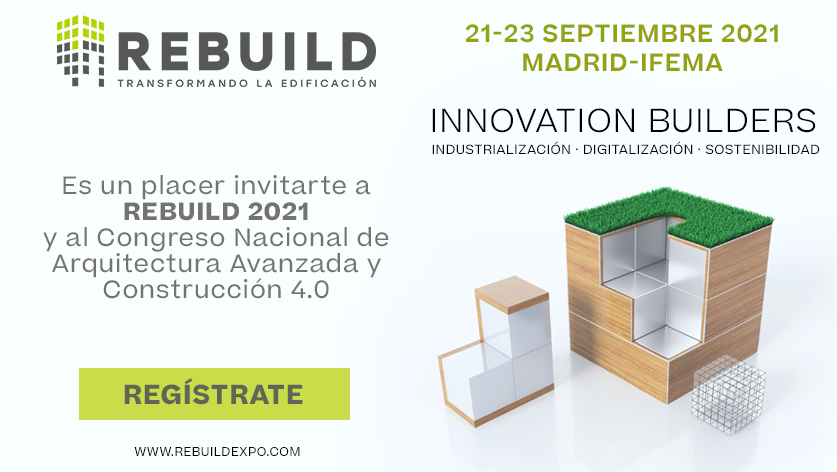 REBUILD 2021 es el evento de innovación para impulsar el sector de la edificación a través de la construcción industrializada, la sostenibilidad, la descarbonización y la digitalización que tendrá lugar del 21 al 23 de septiembre en Madrid - IFEMA.