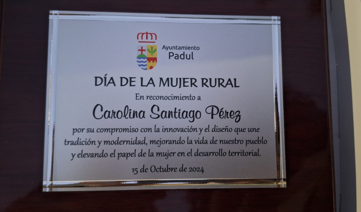 La Arquitecta Carolina Santiago Pérez, ha sido reconocida por el Ayuntamiento de Padul, Granada, en el día internacional de la Mujer Rural.