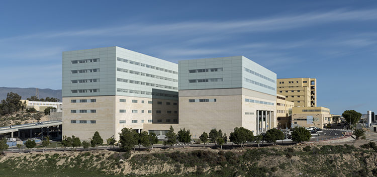 El Hospital Maternoinfantil está conformado por dos volúmenes longitudinales y escalonados anexos al edificio del Hospital Universitario de Torrecárdenas en su costado oeste. La intervención configura una nueva fachada a la ciudad y viene a completar la cartera de servicios de todo el complejo hospitalario, convirtiéndolo en un hospital de referencia nacional.