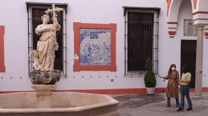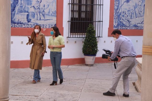 La presidenta del CACOA visitando el Hospital de la Caridad (Sevilla) atendiendo a los informativos de TVE.