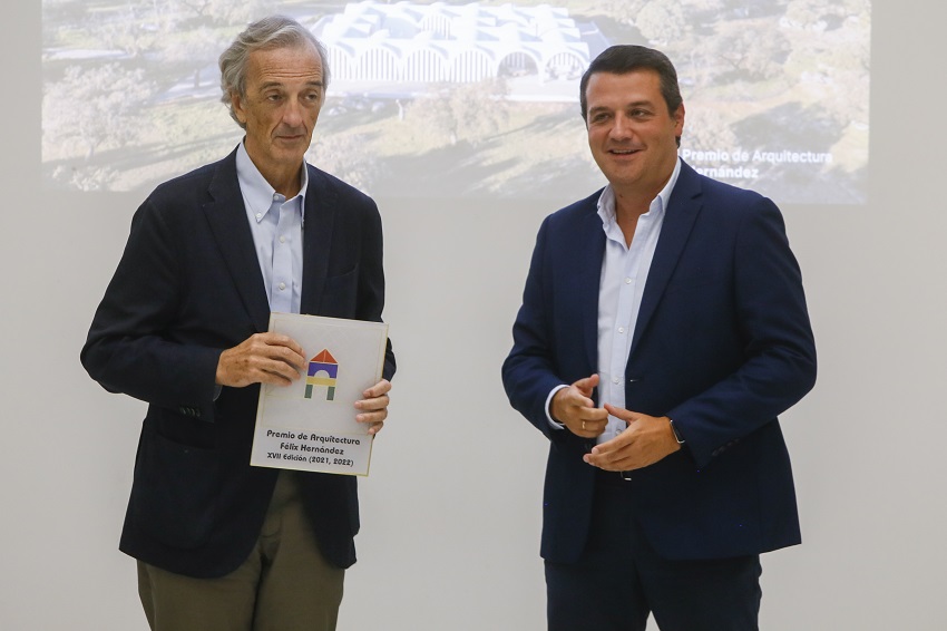 Tras recoger este galardón de manos del alcalde de Córdoba, José María Bellido, Rafael de La-Hoz ensalzó el carácter colectivo de la arquitectura al afirmar que “cualquier acto creativo requiere de muchas personas”; y reflexionó sobre la capacidad de la Mezquita de Córdoba para influir en otros edificios, también en el Observatorio de fauna, a través de la base de su arquitectura: “un golpe de genio logrado en Córdoba hace miles de años, producir variaciones con una constante: un solo arco, sistemáticamente, como un bolero de Ravel”. “A partir de entonces, hay muchas mezquitas de Córdoba repartidas por el mundo, a su pequeña escala también este pequeño edificio en un paraje excepcional como es la mayor dehesa del mundo”, sentenció. En el caso del Observatorio de fauna, es la bóveda –arquetipo constructivo en Los Pedroches– el elemento que, repetido, consigue esas variables. Este edificio ha sido merecedor del Premio Félix Hernández en la categoría de Obra nueva.