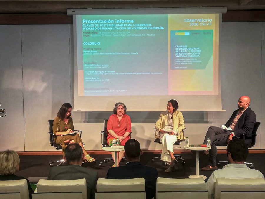 Tras la exposición del informe, la directora senior Next Generación EU de Llorente y Cuenca (LLYC), Paloma Baena, que presentó el acto, moderó un coloquio en el que se abordaron los principales retos que afronta el sector de cara a la rehabilitación, ligados al diagnóstico y las conclusiones del estudio.