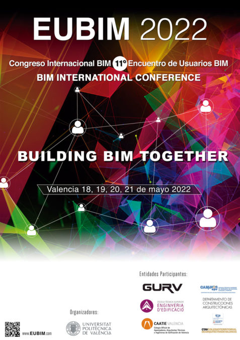| El próximo 18 de Mayo celebrará el Congreso EUBIM 2022 con el lema “BUILDING BIM TOGETHER”, en nuestra sede habitual, la ETSIE de la Universitat Politècnica de València, y que se trasladará a los días 18 de mayo (PREVIO A EUBIM: MASTERCLASS en CTAV, CAATIE), 19 de mayo (TALLERES EUBIM Y 11ºENCUENTRO DE USUARIOS BIM ESPAÑA), 20 y 21 de mayo (CONGRESO INTERNACIONAL BIM).