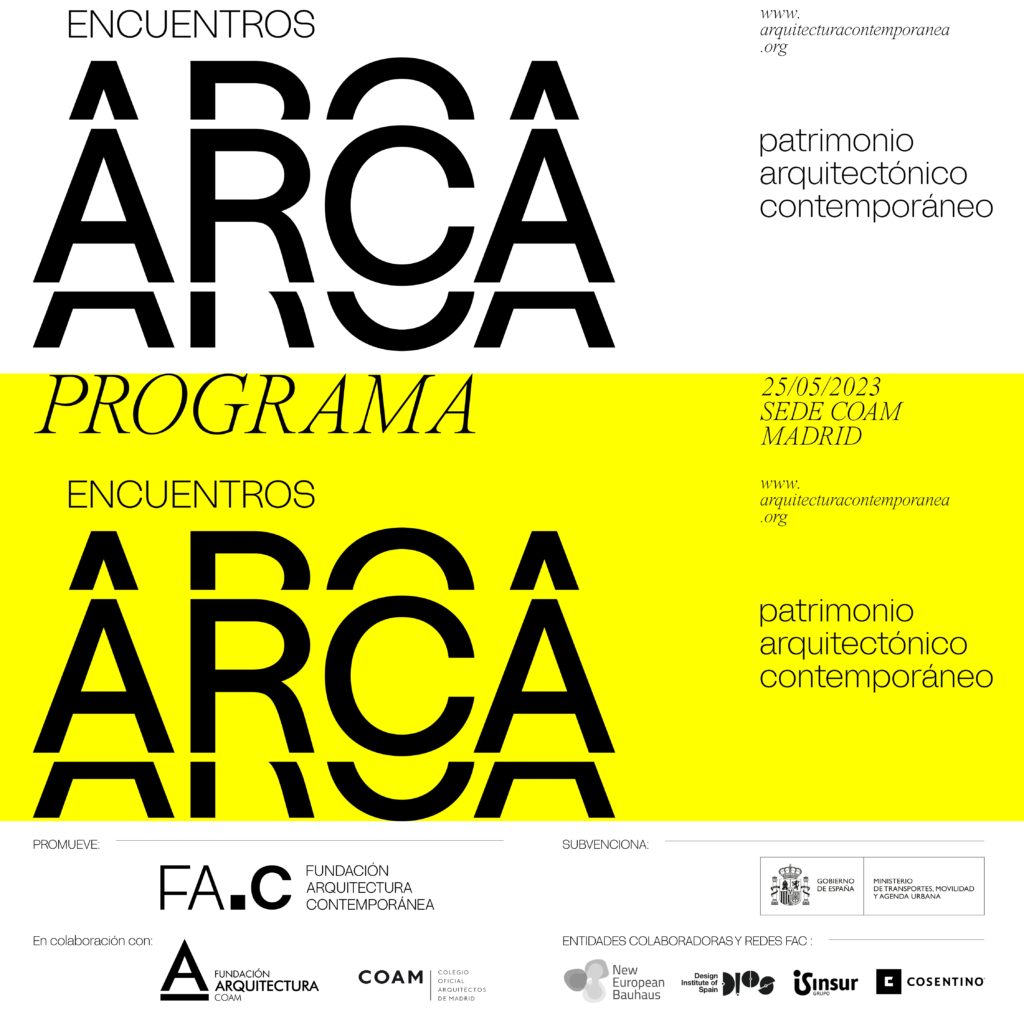 El jueves, 25 de mayo, se celebra en Madrid (en la sede del Colegio de Arquitectos) los Encuentros ARCA. Una jornada que pretende ser decisiva para la protección del patrimonio arquitectónico contemporáneo. Su objetivo es consensuar líneas estratégicas para su protección efectiva, contando para ello con representantes de las administraciones y entidades de referencia en este ámbito.