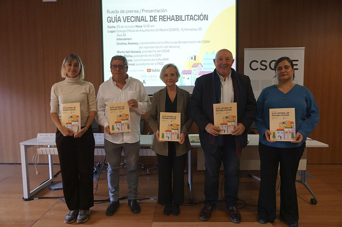 En un país, como España, en el que la tasa de rehabilitación del parque edificado se sitúa muy por debajo de los niveles necesarios para cumplir los ob-jetivos climáticos marcados por la Unión Europea para 2050, el material didác-tico, que ha sido presentado esta mañana, en el transcurso de una rueda de prensa, en el Colegio Oficial de Arquitectos de Madrid (COAM), tiene el objetivo de facilitar el proceso de rehabilitación de los más de 10 millones de vivien-das que necesitan afrontar esta transformación. Pero, además, no olvida otras transformaciones irrenunciables, como la mejora de la accesibilidad, la conservación y la funcionalidad. Y todo ello de una forma muy práctica y con un lenguaje sencillo y ameno que trata de acercar los conceptos clave de la rehabili-tación a la ciudadanía y dar respuesta a las principales preocupaciones detecta-das por las entidades vecinales. La guía será utilizada por las entidades vecina-les y las Oficinas de Apoyo a la Rehabilitación de los Colegios de Arquitectos pa-ra difundir la cultura de la rehabilitación entre la población.
