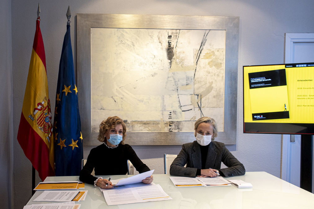 Por su parte, la tesorera del CSCAE y coordinadora de la comisión de género del Consejo, María José Peñalver, se ha encargado de realizar la exposición de los datos más destacados extraídos de este informe y ha desgranado las diversas iniciativas que desde el año 2018 el CSCAE viene realizando en materia de igualdad.