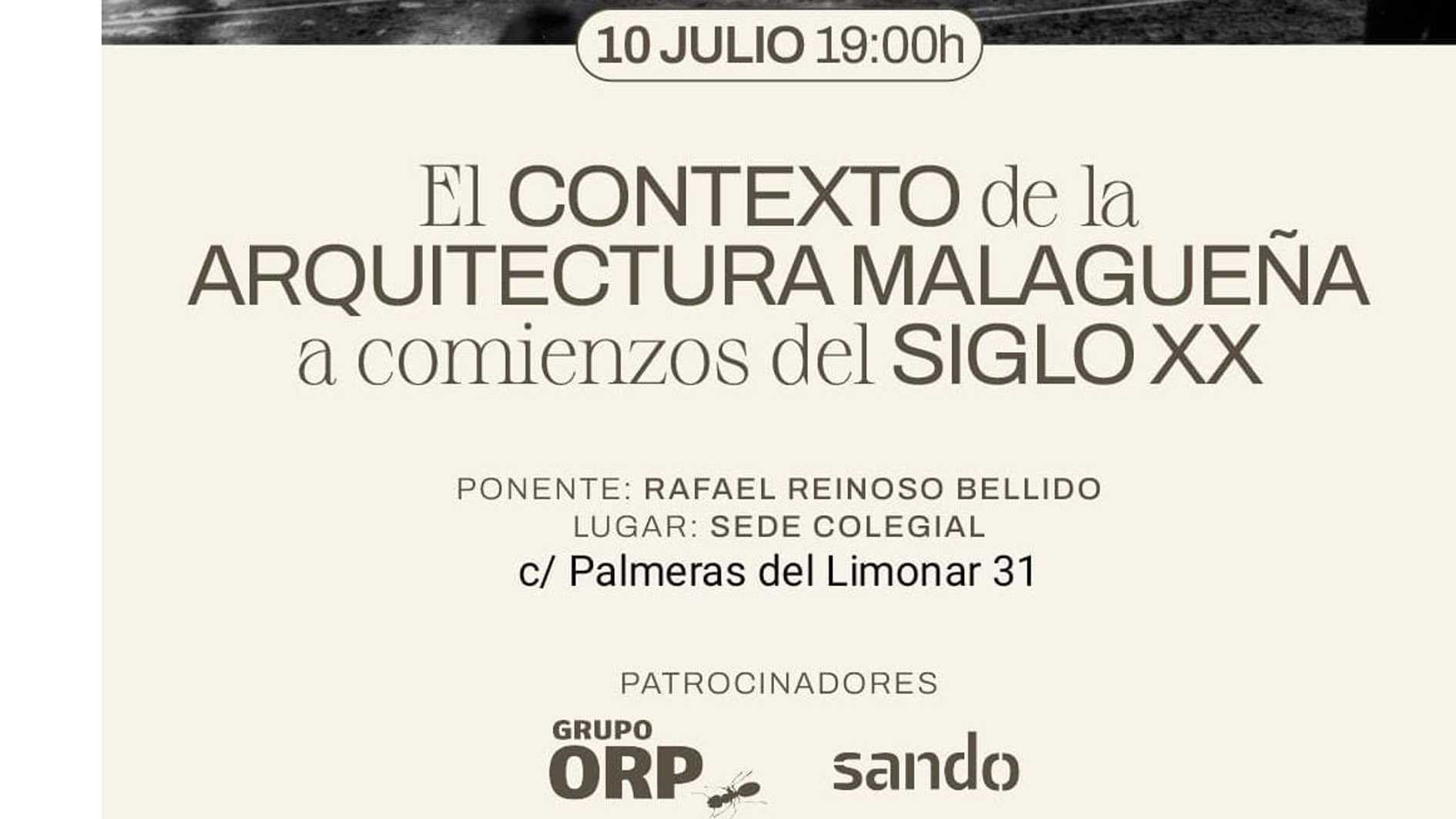 La presentación del ciclo 'Guerrero Strachan. 100 años de la casa de los arquitectos' en la sede colegial tendrá lugar el miércoles 10 de julio a las 19.00 horas, en el salón de actos del COAMálaga (c/Palmeras del Limonar 31) con la primera conferencia del ciclo: ‘El contexto de la arquitectura malagueña a comienzos del siglo XX’ impartida por el colegiado D. Rafael Reinoso Bellido.