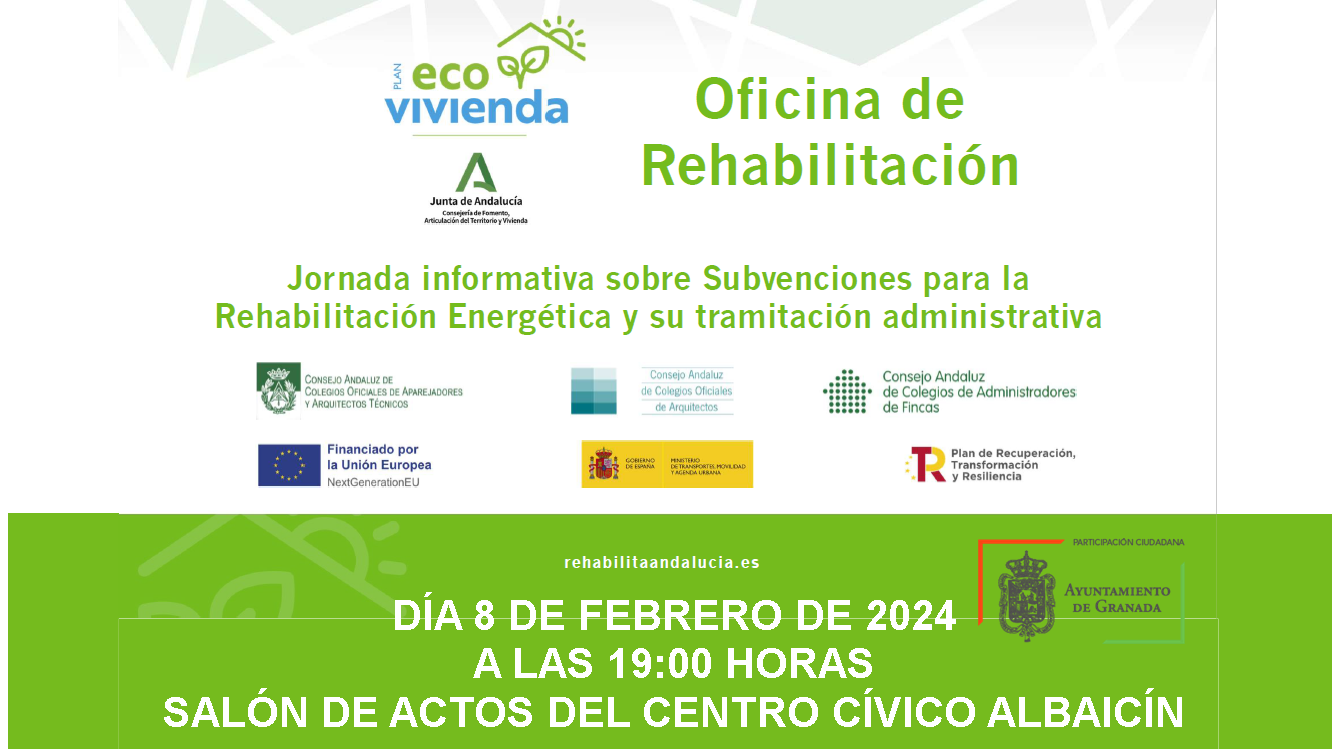 La Oficina de Rehabilitación de Andalucía, en colaboración con el Ayuntamiento de ALBAICÍN celebrará una jornada divulgativa sobre subvenciones para la rehabilitación energética de viviendas.