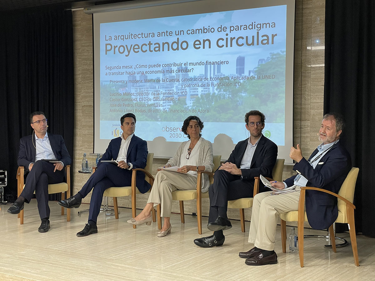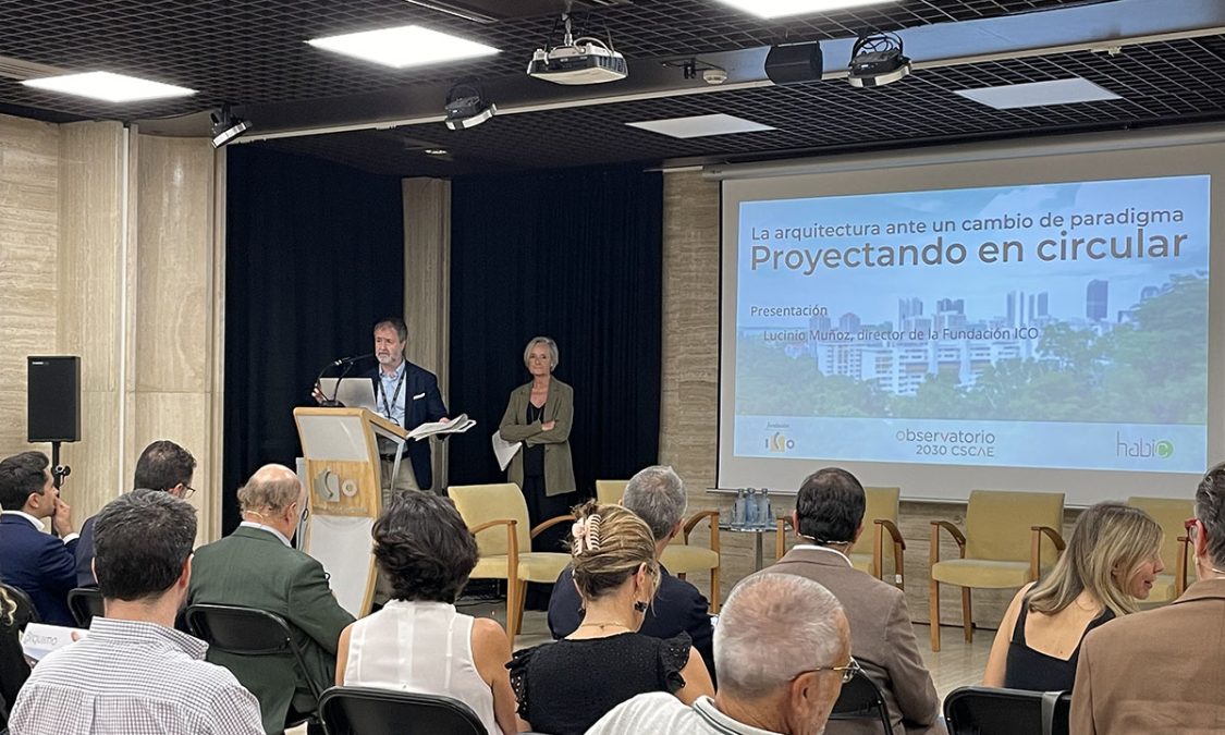 La economía actual se basa en un proceso lineal cuyos principios básicos son el crecimiento económico permanente y un consumo constante, que, sin embargo, han deparado un deterioro evidente del medioambiente. En contraste, la economía circular promueve modelos de negocio que reemplazan el concepto de 'fin de vida útil' por reducir, reutilizar, reciclar y recuperar materiales. Sobre este cambio de modelo económico, la sede de la Fundación ICO acogió, ayer, la jornada “La arquitectura ante un cambio de paradigma. Proyectando en circular”, coorganizada con el Observatorio 2030 del Consejo Superior de los Colegios de Arquitectos de España (CSCAE), en el marco de la Semana de la Arquitectura de Madrid.