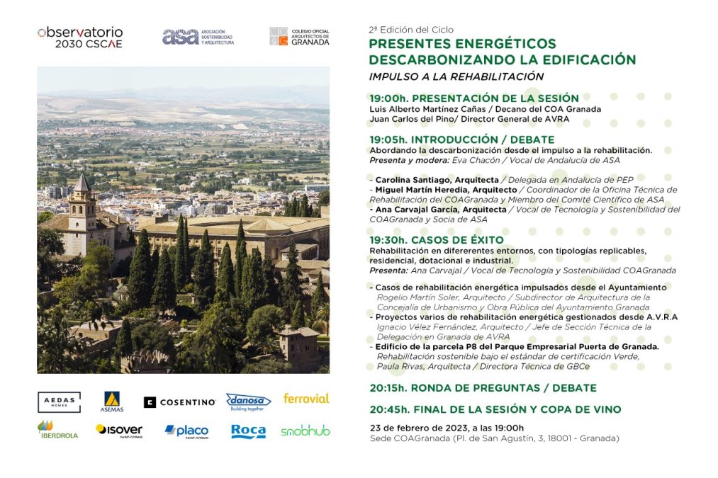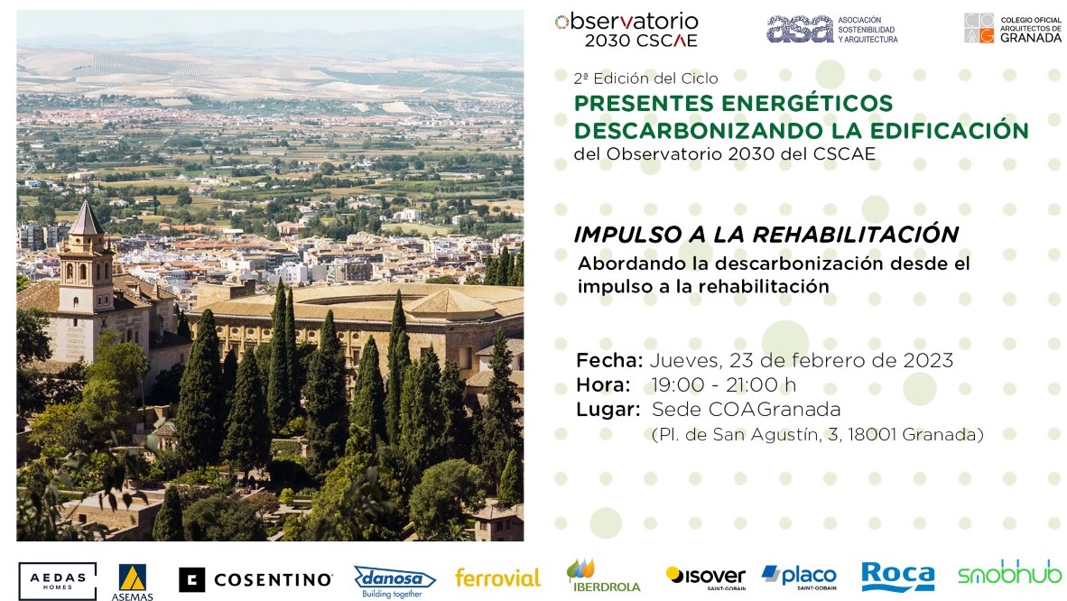 Tendrá lugar el próximo jueves, 23 de febrero a las 19:00h, en la Sede del COA Granada (Pl. de San Agustín, 3. Granada).