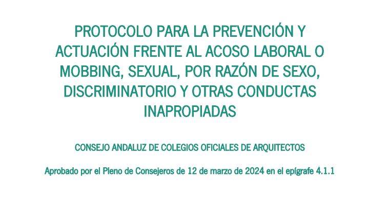 Hemos publicado en la sección de Transparencia en el apartado de información institucional, organización y gestión del CACOA el Protocolo para la prevención y actuación frente al acoso laboral o mobbing, sexual, por razón de sexo, discriminatorio y otras conductas inapropiadas que se aprobó por el Pleno de Consejeros de 12 de marzo de 2024.