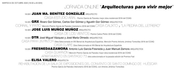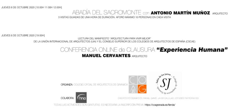 CON MOTIVO DE LA SEMANA INTERNACIONAL DE LA ARQUITECTURA 2019 DE GRANADA, QUE TENDRÁ LUGAR DEL 6 AL 8 DE OCTUBRE DE 2020, EL COLEGIO OFICIAL DE ARQUITECTOS DE GRANADA HA ORGANIZADO LAS SIGUIENTES ACTIVIDADES: