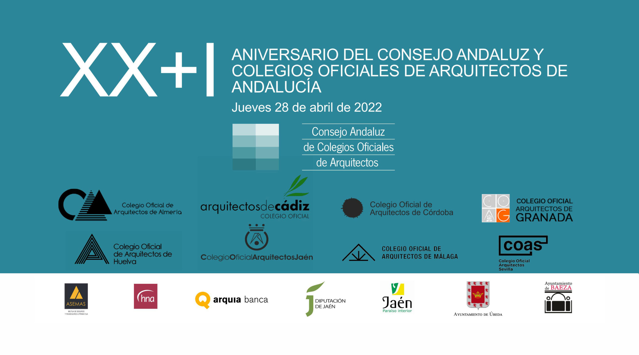El XX+I Aniversario de la constitución del Consejo Andaluz de Arquitectos de Andalucía, que se celebrará en las ciudades Patrimonio de la Humanidad, Úbeda y Baeza, reunirá a los/las consejeros/as y presidentes de todos los colegios de España, así como numerosas autoridades.
