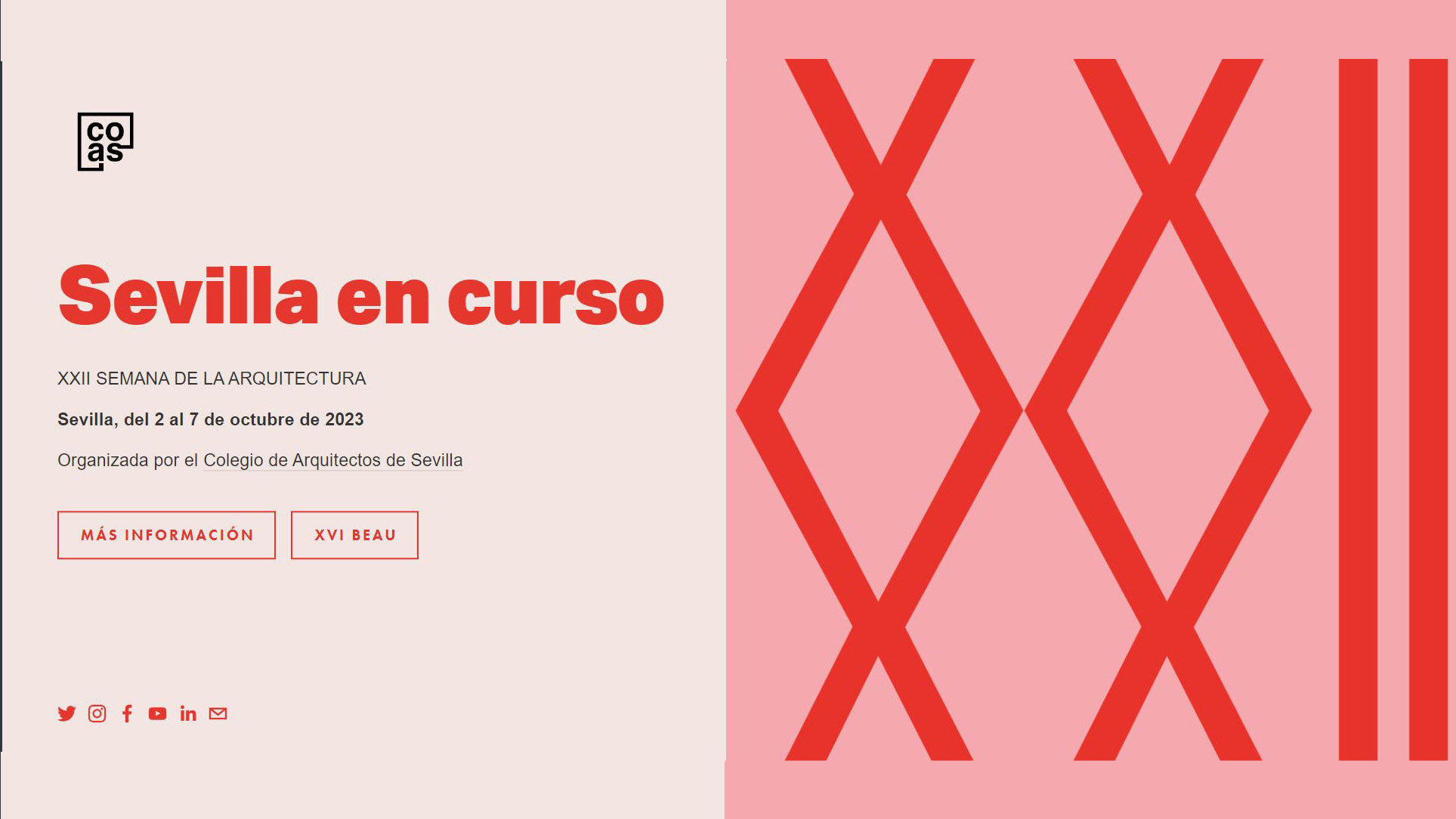 Este año, la Semana de la Arquitectura va de la mano de la XVI Bienal de Arquitectura Española, que por primera vez se celebra en Sevilla bajo el comisariado de María González, Juanjo López y Ángel Martínez. Aprovechando esta oportunidad única, la Semana de la Arquitectura se celebrará desde el lunes 2 al sábado 7 de octubre, bajo el lema “Sevilla en curso”.